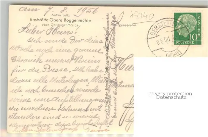 Geislingen_Steige Raststaette Obere Roggenmuehle Geislingen_Steige postalisch gelaufen 1956 Erhaltung siehe scans [PaolaD17] PaolPID1