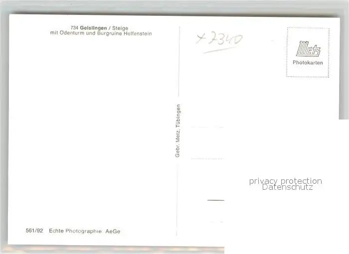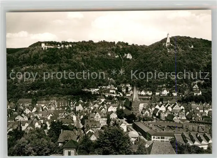Geislingen_Steige Stadtpanorama mit oedenturm und Burgruine Helfenstein Schwaebische Alb Geislingen_Steige postalisch nicht gelaufen nach 1965 Erhaltung siehe scans [FriedD77] Frierer