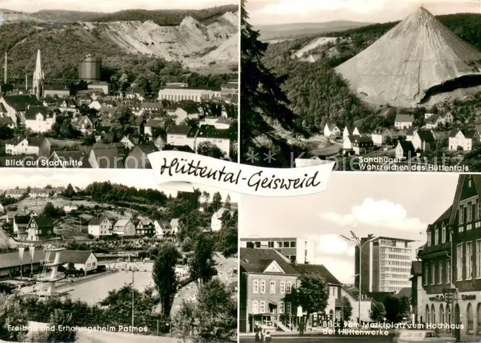 AK / Ansichtskarte Geisweid Stadtmitte Sandhuegel Marktplatz Freibad u. Erholungsheim Patmos Geisweid