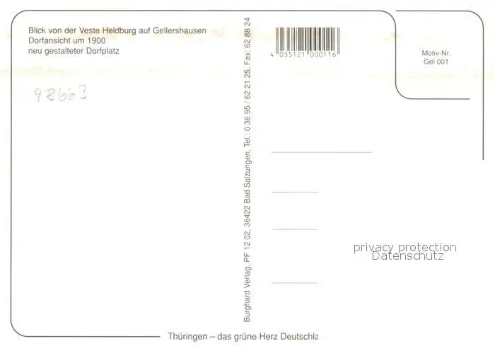 Gellershausen_Hildburghausen 800 Jahre Jubilaeum Blick von Veste Heldburg Dorfansicht um 1900 neu gestalteter Dorfplatz Gellershausen postalisch nicht gelaufen nach 1965 Erhaltung siehe scans [FriedD77] Frierer