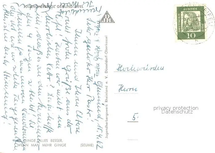 Gemuend_Eifel Jugendherberge Gemuend Eifel postalisch gelaufen 1962 Erhaltung siehe scans [WerneD78] WernPID7