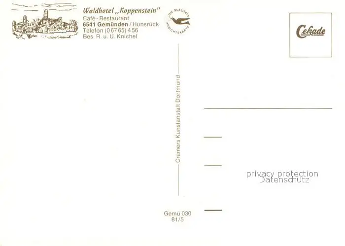 Gemuenden_Hunsrueck Panorama Cafe Restaurant Waldhotel Kegelbahn Liegewiese Gemuenden Hunsrueck postalisch nicht gelaufen nach 1965 Erhaltung siehe scans [WerneD78] WernPID7