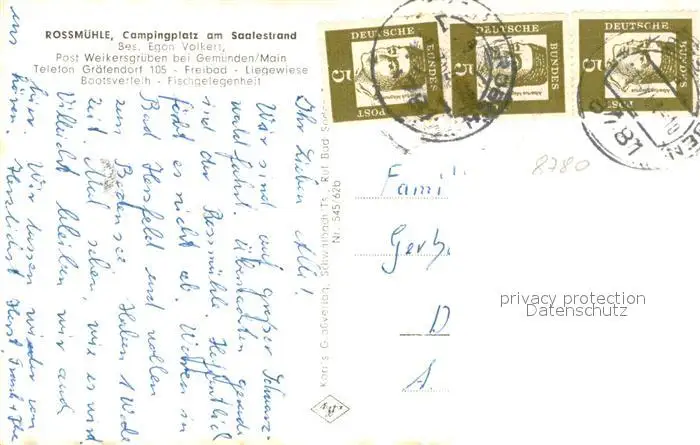 Gemuenden_Main Rossmuehle Campingplatz am Saalestrand Panorama Gemuenden Main postalisch gelaufen 1965 Erhaltung siehe scans [WerneD78] WernPID7