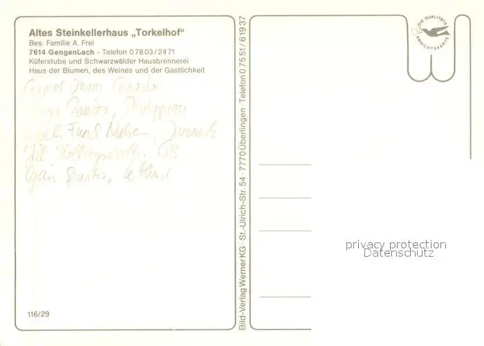 Gengenbach Altes Steinkellerhaus Torkelhof Gengenbach postalisch nicht gelaufen nach 1965 Erhaltung siehe scans [WerneD78] WernPID7
