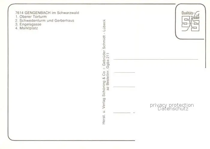 Gengenbach Oberer Torturm Schwedenturm Gerberhaus Engelsgasse Marktplatz Gengenbach postalisch nicht gelaufen nach 1965 Erhaltung siehe scans [KathaD81] Kathoren