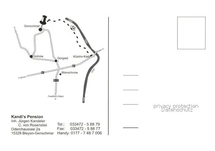 Genschmar Kandi's Pension Genschmar postalisch nicht gelaufen nach 1965 Erhaltung siehe scans [FriedD77] Frierer
