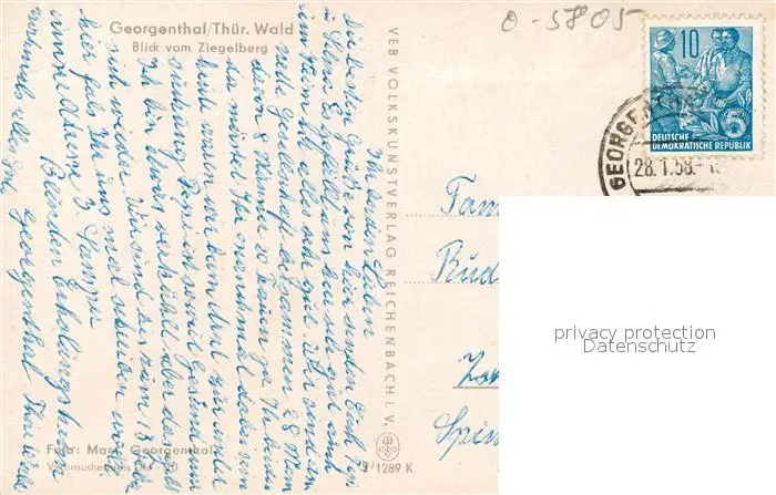 Georgenthal_Gotha Blick vom Ziegelberg Georgenthal Gotha postalisch gelaufen 1958 Erhaltung siehe scans [WerneD78] WernPID7