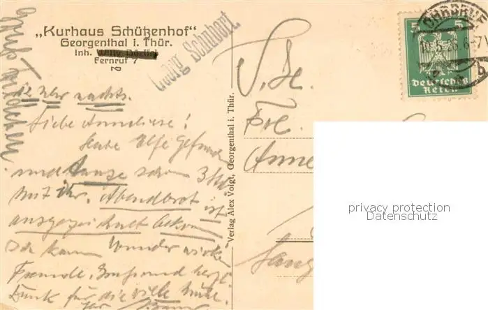 Georgenthal_Gotha Kurhaus Schuetzenhof am Hammerteich Georgenthal Gotha postalisch gelaufen 1926 Erhaltung siehe scans [WerneD78] WernPID7