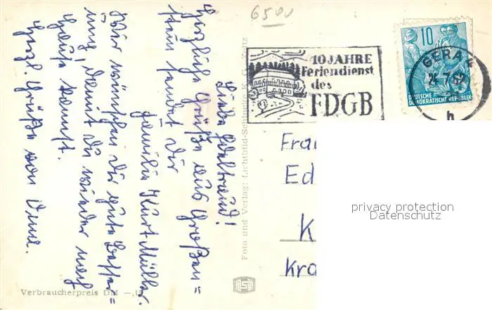 Gera Dahliengarten Gera postalisch gelaufen 1955 Erhaltung siehe scans [FriedD77] Frierer