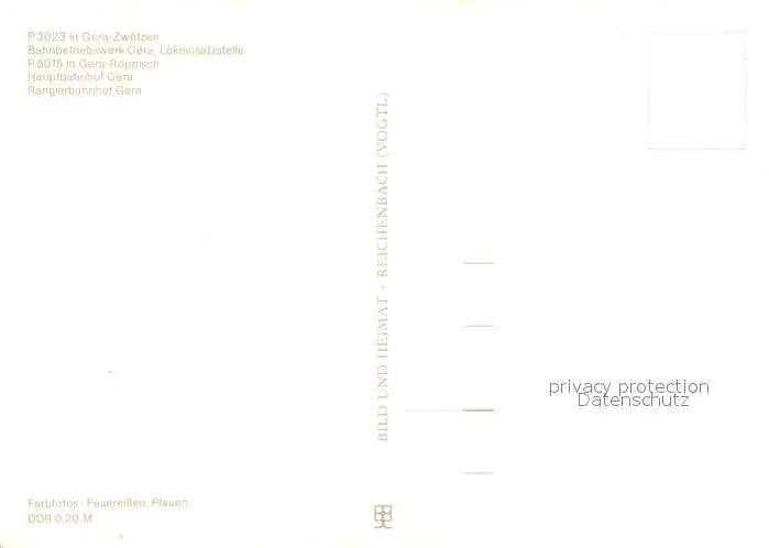 Gera Eisenbahnknoten Dampflokomotiven P3023 P8015 Hauptbahnhof Rangierbahnhof Gera postalisch nicht gelaufen 1986 Erhaltung siehe scans [FriedD77] Frierer