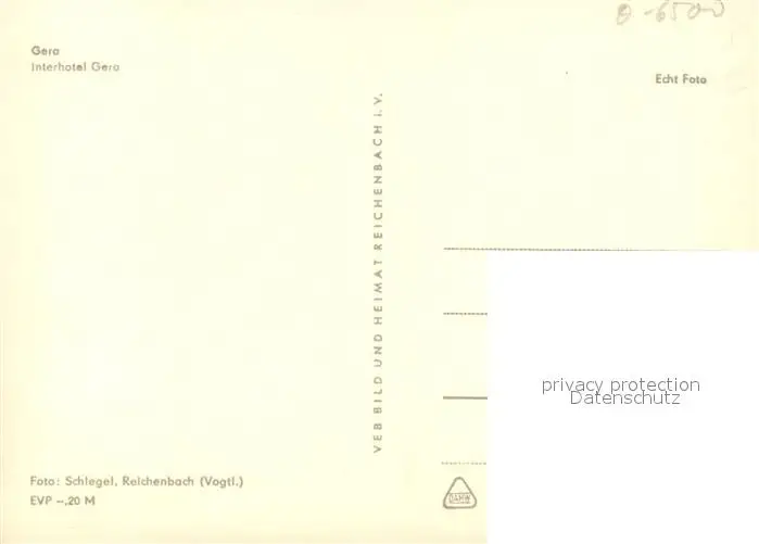 Gera Interhotel Gera Gera postalisch nicht gelaufen nach 1965 Erhaltung siehe scans [WerneD78] WernPID7