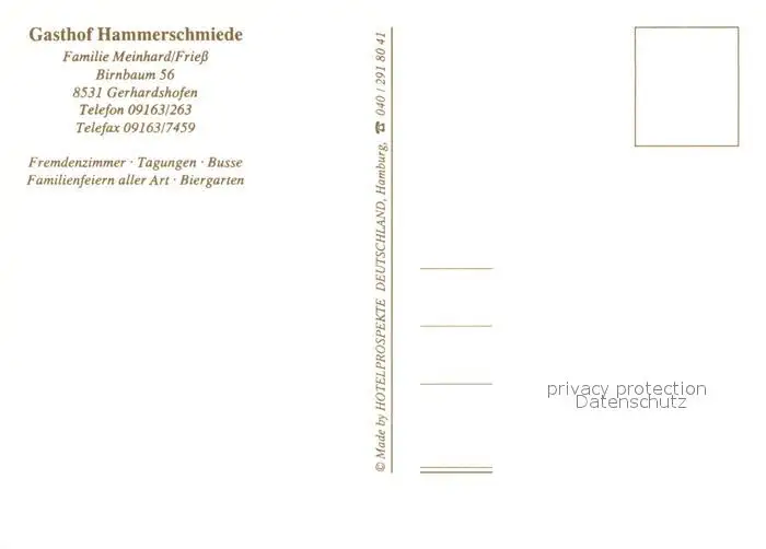 Gerhardshofen Gasthof Hammerschmiede Restaurant Fremdenzimmer Gerhardshofen postalisch nicht gelaufen nach 1965 Erhaltung siehe scans [FriedD77] Frierer