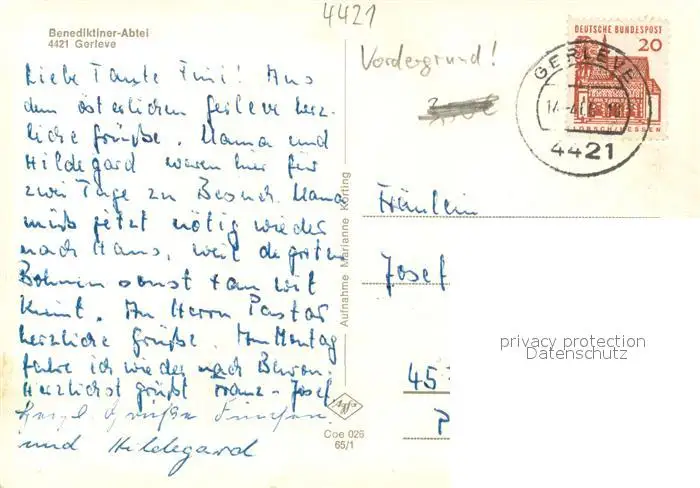 Gerleve Benediktiner Abtei Gerleve postalisch gelaufen 1968 Erhaltung siehe scans [WerneD78] WernPID7
