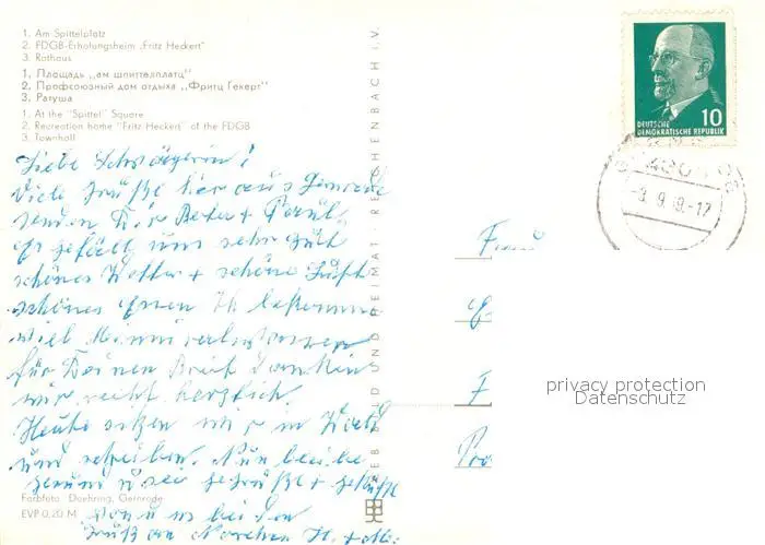 Gernrode_Harz Am Spittelplatz FDGB Erholungsheim Fritz Heckert Rathaus Gernrode Harz postalisch gelaufen 1969 Erhaltung siehe scans [WerneD78] WernPID7