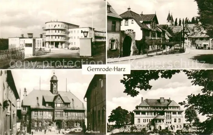 AK / Ansichtskarte Gernrode_Harz FDGB Heim Fritz Heckert Cyriakuskirche Rathaus FDGB Heim Stuebenberg Gernrode Harz