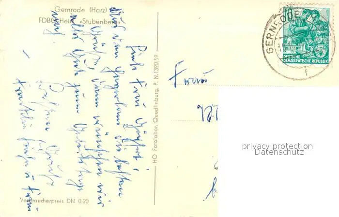 Gernrode Harz Kategorie Alte Ansichtskarten Postkarten bx67356 Gernrode_Harz FDGB Heim Stubenberg Gernrode Harz postalisch gelaufen 1960 Erhaltung siehe scans [FriedD77]