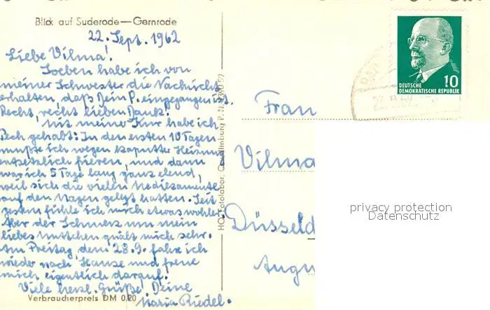 Gernrode_Harz Panorama Blick auf Suderode Gernrode Harz postalisch gelaufen 1962 Erhaltung siehe scans [FriedD77] Frierer