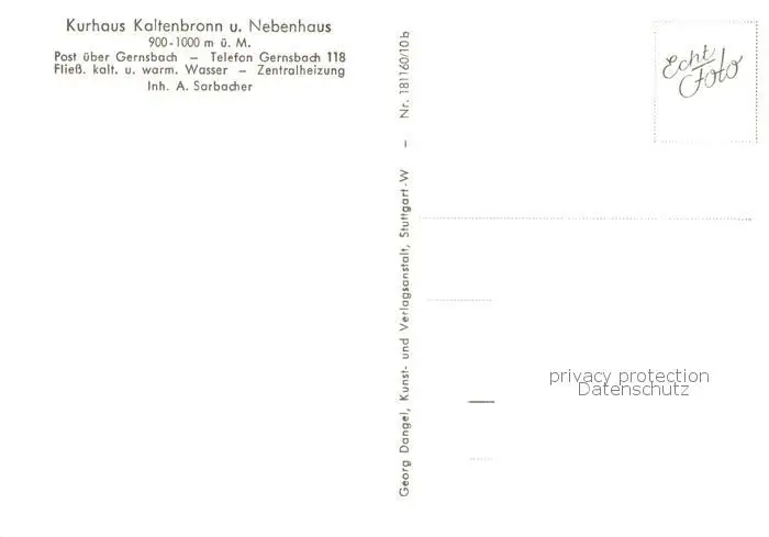 Gernsbach Kurhaus Kaltenbronn und Nebenhaus im Schwarzwald Gernsbach postalisch nicht gelaufen 1921-1965 Erhaltung siehe scans [FriedD77] Frierer