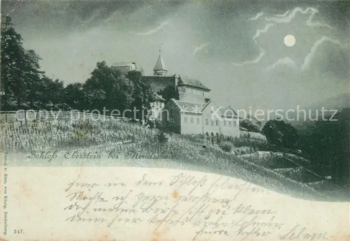 Gernsbach Schloss Eberstein Mondschein Gernsbach postalisch gelaufen 1898 Erhaltung siehe scans [KathaD81] Kathoren
