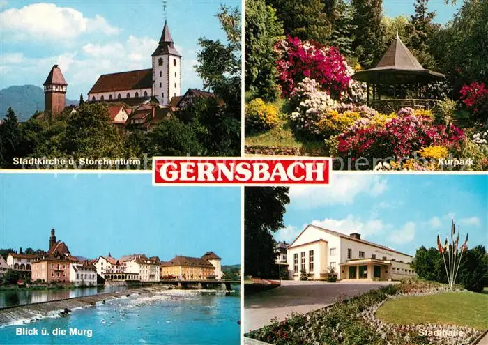 AK / Ansichtskarte Gernsbach Stadtkirche Storchenturm Kurpark Stadthalle Gernsbach