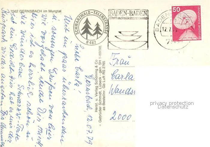 Gernsbach im Murgtal Schwarzwald Fliegeraufnahme Gernsbach postalisch gelaufen 1979 Erhaltung siehe scans [FriedD77] Frierer