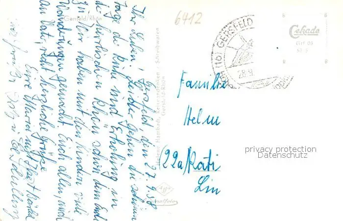Gersfeld Rhoen Kategorie Alte Ansichtskarten Postkarten bx79398 Gersfeld_Rhoen Ortsansicht Gersfeld Rhoen postalisch gelaufen 1958 Erhaltung siehe scans [WerneD78]