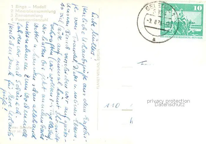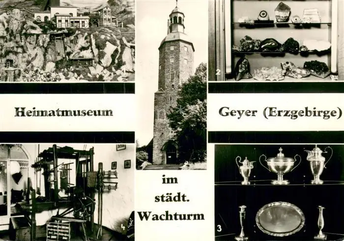 Geyer Heimatmuseum Binge-Modell Mineraliensammlung Zinnsammlung Posamentierstuhl Geyer postalisch gelaufen 1979 Erhaltung siehe scans [FriedD77] Frierer