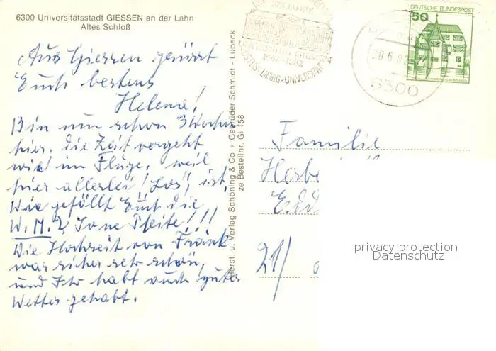 Giessen_Lahn Altes Schloss Wappen Giessen_Lahn postalisch gelaufen 1982 Erhaltung siehe scans [FriedD77] Frierer