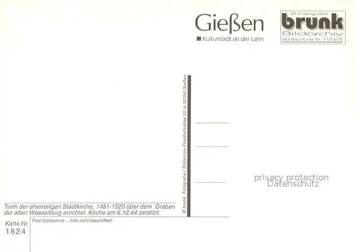 Giessen_Lahn Stadtkirche Giessen_Lahn postalisch nicht gelaufen nach 1965 Erhaltung siehe scans [LiesaD40] LiesID40