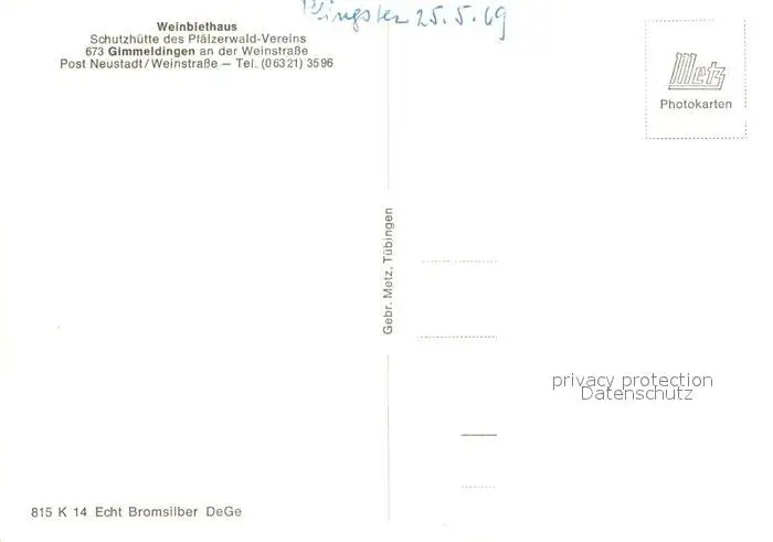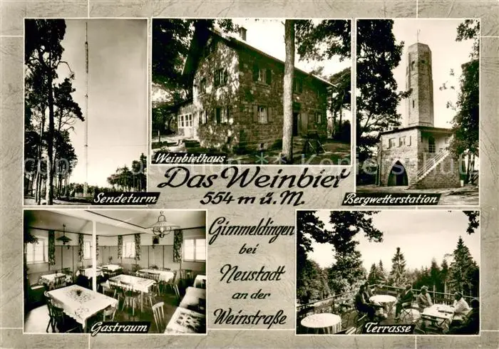 Gimmeldingen Weinbiethaus Schutzhuette des Pfaelzerwaldvereins Sendeturm Bergwetterstation Gimmeldingen postalisch nicht gelaufen 1969 Erhaltung siehe scans [FriedD77] Frierer