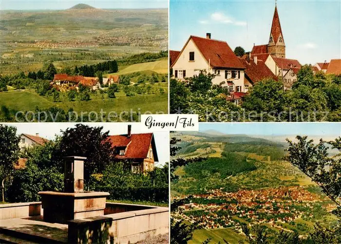 Gingen Fils Kategorie Alte Ansichtskarten Postkarten bx47348 Gingen_Fils Fliegeraufnahme Kirche Brunnen Gingen Fils postalisch nicht gelaufen nach 1965 Keine Postkarte (siehe scan) Erhaltung siehe scans [LiesaD40]