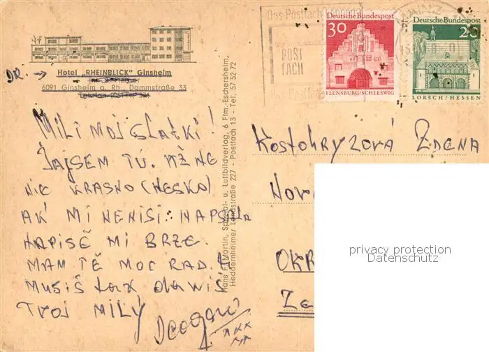 Ginsheim_Mainz Hotel Rheinblick Rheinpartie Teilansichten postalisch gelaufen nach 1965 Erhaltung siehe scans [WerneD78] WernPID7