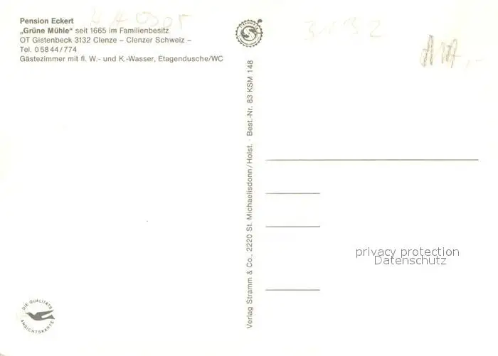 Gistenbeck Pension Eckert Gruene Muehle Ponywagen Clenzer Schweiz Gistenbeck postalisch nicht gelaufen nach 1965 Erhaltung siehe scans [FriedD77] Frierer