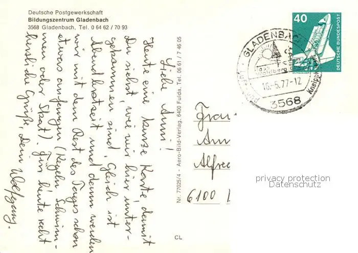 Gladenbach Bildungszentrum Hallenbad Gladenbach postalisch gelaufen 1977 Erhaltung siehe scans [FriedD77] Frierer