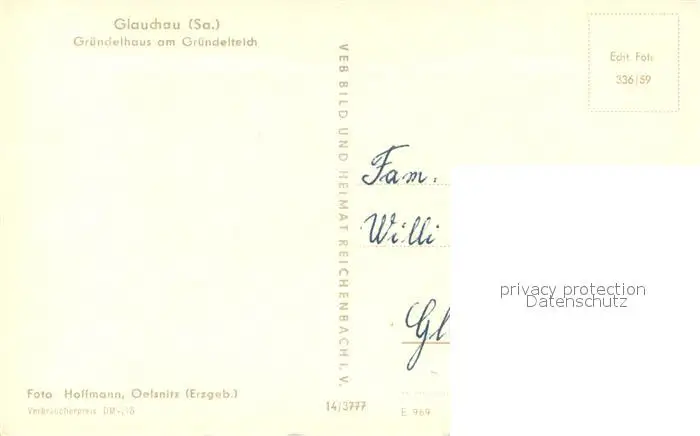 Glauchau Gaststaette Gruendelhaus am Gruendelteich Glauchau postalisch nicht gelaufen 1959 Erhaltung siehe scans [FriedD77] Frierer