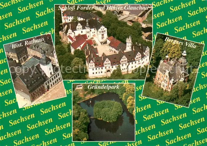 AK / Ansichtskarte Glauchau Schloss Vorder und Hinter Glauchau Hist Rathaus Gruendelpark Bergers Villa Fliegeraufnahmen Glauchau