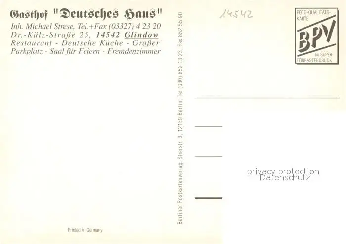 Glindow Gasthof Deutsches Haus Gastraeume Bar Terrasse Glindow postalisch nicht gelaufen nach 1965 Erhaltung siehe scans [WerneD78] WernPID7