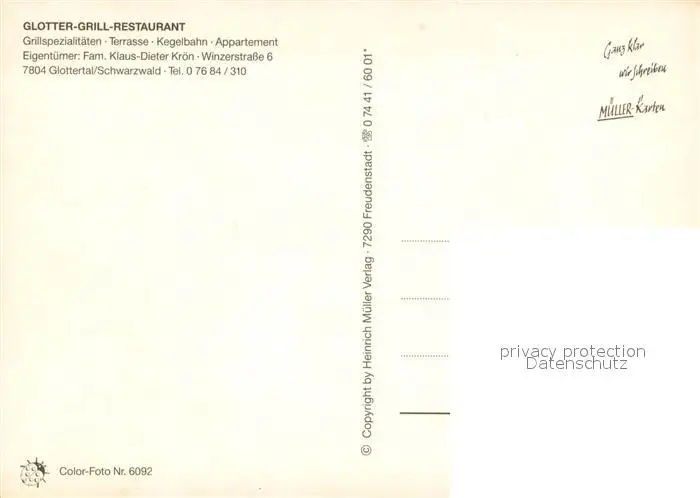 Glottertal Glotter Grill Restaurant Ortsansicht mit Kirche Glottertal postalisch nicht gelaufen nach 1965 Erhaltung siehe scans [FriedD77] Frierer