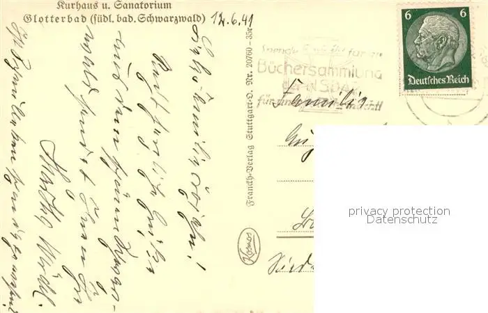 Glottertal Kurhaus und Sanatorium Glotterbad Glottertal postalisch gelaufen 1941 Erhaltung siehe scans [WerneD78] WernPID7