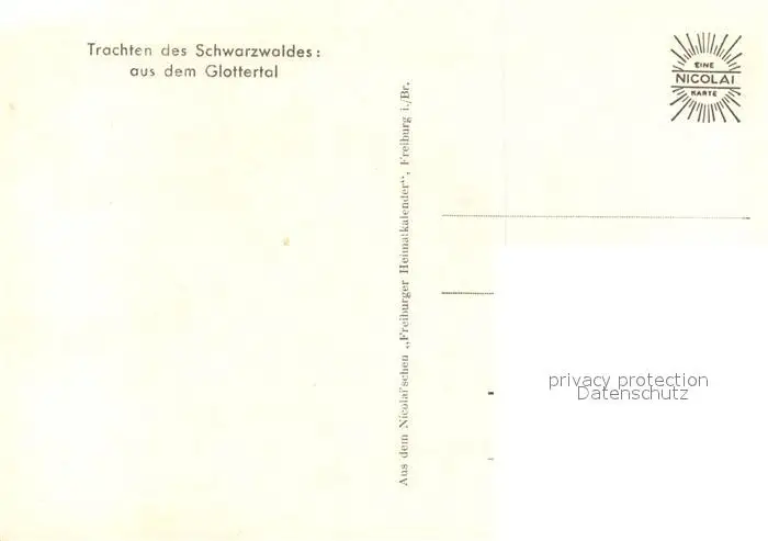 Glottertal Trachten des Schwarzwaldes Glottertal postalisch nicht gelaufen 1921-1965 Erhaltung siehe scans [LiesaD40] LiesID40