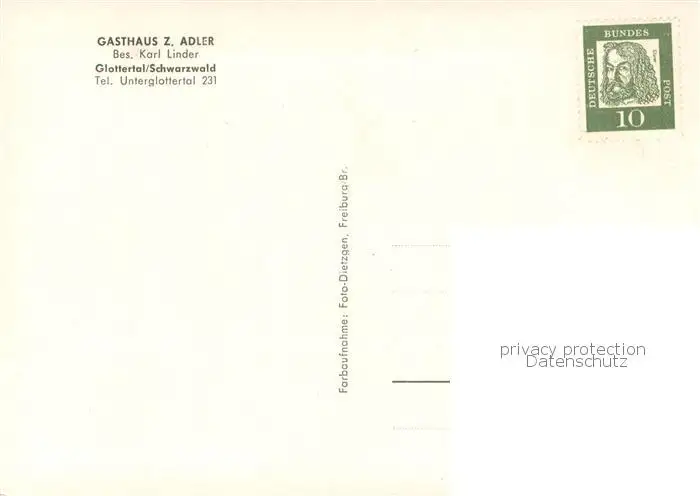 Glottertal_Schwarzwald Gasthaus zum Adler postalisch nicht gelaufen 1962 Erhaltung siehe scans [WerneD78] WernPID7