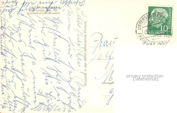 Glottertal_Schwarzwald Gasthaus zum Adler postalisch gelaufen 1957 Erhaltung siehe scans [FriedD77] Frierer