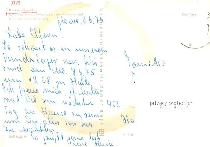 Glowe_Ruegen Zentrales Kinderferienlage der Gewerkschaft Glowe Ruegen postalisch gelaufen 1979 Erhaltung siehe scans [LiesaD40] LiesID40