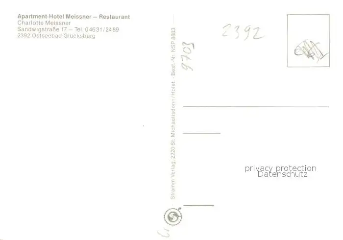Gluecksburg_Ostseebad Apartment Hotel Meissner Restaurant Gluecksburg_Ostseebad postalisch nicht gelaufen nach 1965 Erhaltung siehe scans [FriedD77] Frierer