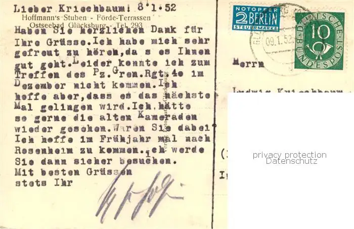 Gluecksburg_Ostseebad Hoffmans Stuben - Foerde Terrassen Innenansicht-Stube Gluecksburg_Ostseebad postalisch gelaufen 1952 Erhaltung siehe scans [LiesaD40] LiesID40