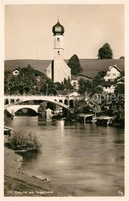 Gmund_Tegernsee Bruecke und Kirche Gmund Tegernsee postalisch nicht gelaufen 1921-1965 Erhaltung siehe scans [WerneD78] WernPID7