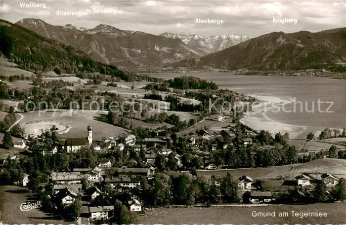 Gmund_Tegernsee Panorama Alpen Gmund Tegernsee postalisch gelaufen 1957 Fliegeraufnahme Erhaltung siehe scans [FriedD77] Fliegeraufnahme Frierer