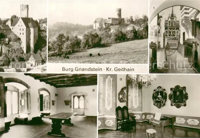AK / Ansichtskarte Gnandstein Burg Gnandstein Spaetgot Kapelle Marienaltar Palassaal Barocksaal Gnandstein