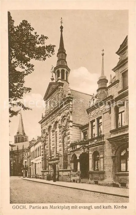 Goch Partie am Marktplatz mit ev und kath Kirche Goch postalisch nicht gelaufen 1920 Erhaltung siehe scans [WerneD78] WernPID7
