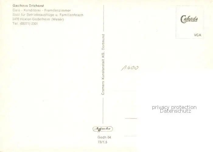Godelheim Gasthaus Driehorst Festsaal Godelheim postalisch nicht gelaufen nach 1965 Erhaltung siehe scans [FriedD77] Frierer